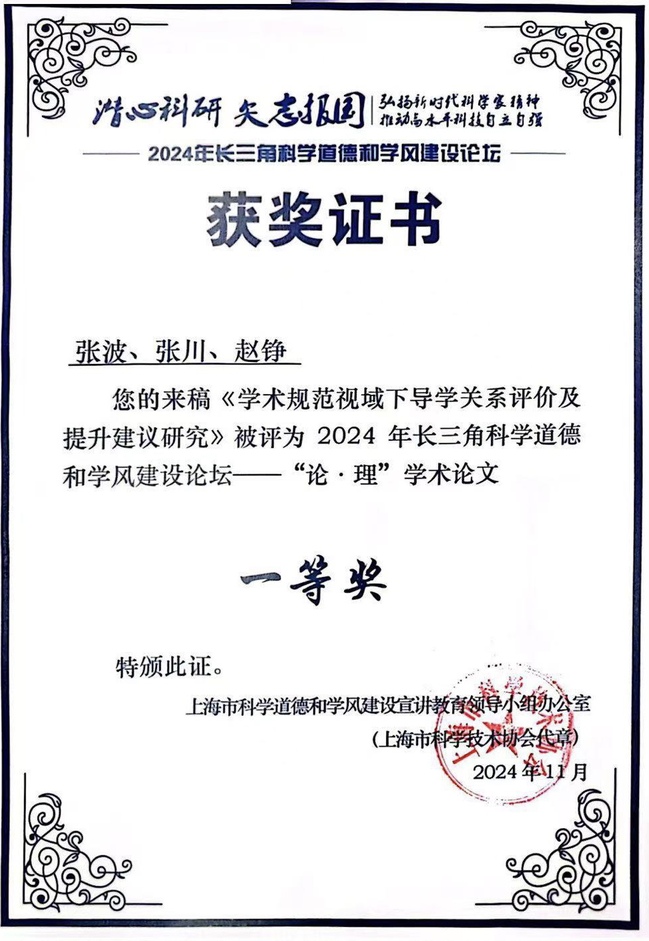 11月9日,2024年长三角科学道德和学风建设论坛在上海理工大学落下帷幕,论坛为优秀学术论文、优秀工作案例、优秀主题词曲、“研究生创新实践之星”以及优秀组织奖单位举行颁奖仪式。我校研究生工作部积极动员、精心培育、广泛组织全校师生参与校内选拔赛,挑选优秀作品参加本届论坛。最终,我校总会计师张川指导的经管学院研究生张波同学撰写的《学术规范视域下导学关系评价及提升建议研究》论文获得一等奖。我校还获得二等奖2项,三等奖6项,优秀奖10项,获得“研究生创新实践之星”1人次,同时,我校连续四年获得优秀组织奖。本次论坛我校共获奖20项,实现了在该项赛事的新突破。