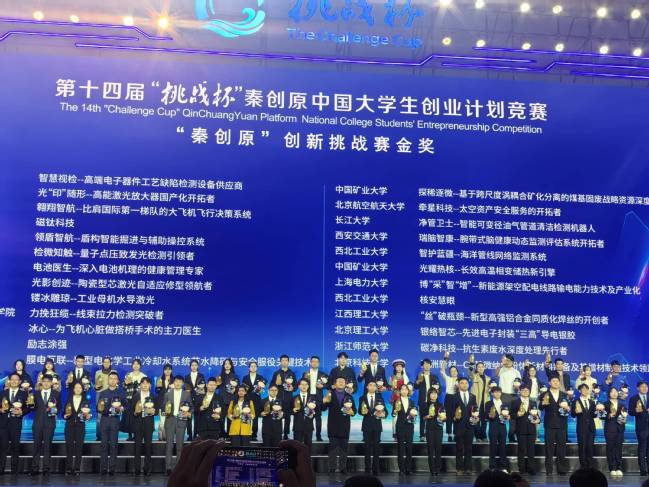 挑战激扬青春,创业点亮梦想。11月2日,第十四届“挑战杯”秦创原中国大学生创业计划竞赛终审决赛在西安交通大学举办。我校参赛项目团队在校党委的坚强领导下,在校团委的精心组织和相关学院的共同努力下,在奖项成色、奖项类别和奖项数量上取得多项突破!在主体赛中,荣获全国银奖1项、铜奖1项。在“秦创原”创新挑战赛中,荣获全国金奖1项(上海唯一)、铜奖1项,实现了我校在“挑战杯”中国大学生创业计划竞赛中的重大突破。