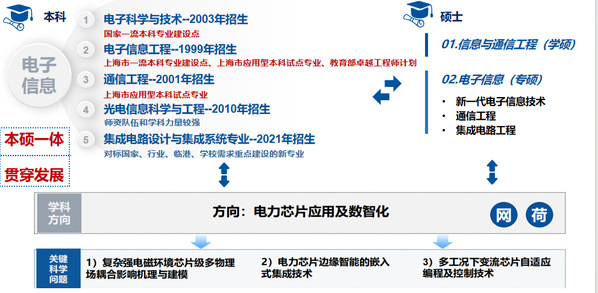 2021年,电子科学与技术专业获批国家级一流本科专业建设点,这是电信学院在专业建设中取得的重大突破。2021年,面向国家集成电路发展战略,适配行业与区域经济发展需求,集成电路新专业顺利申报并招生。2022年,电子信息工程专业获批上海市一流本科专业建设点,专业内涵建设进一步提升。此外,电信学院从教学教改、师资培养、实验室建设、产教融合等多方面入手,顺利完成电子信息工程和通信工程两个上海市应用型本科试点专业的管理与建设,工程认证自评报告都已通过评审,等待专家进校考察。
