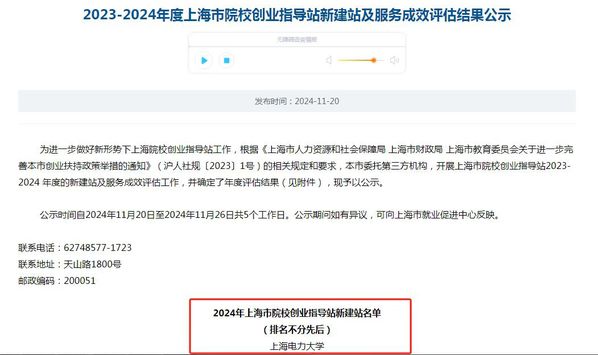 此外,校团委积极申报上海市创业指导站,经过前期材料提交、现场答辩和专家进校考察等环节,目前已获批创建成功。深入推进指导站与浦兴路街道、书院镇等合作,提升学生创新创业能力,促进优质项目落地转化等。