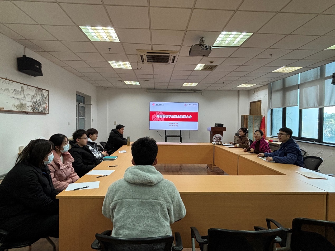 为强化寒假安全教育,提升学院寒假留校学生的安全意识和自我管理能力,1月13日下午,自动化工程学院于杨浦校区致远楼304会议室召开2025年寒假留校学生安全教育会。学院党委副书记王佳丽、园区负责人王旻洁、辅导员陈炜、赵霜出席会议,全体寒假留校学生参会,会议由王旻洁主持。