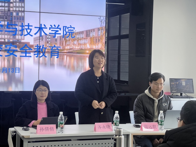 会上,齐永晓首先从安全教育工作、留校管理要求等方面展开,强调消防安全、人身财产安全、交通出行安全和防范电信诈骗,告诫同学们要严格遵守寒假留校安全管理制度,增强安全防范意识,筑起一道保障假期留校学生认真学习、积极实践的“安全屏障”。同时,叮嘱寒假留校同学们要紧绷安全之弦,经常主动与老师、父母、亲朋好友联络,充分利用假期留校时间开展科学研究和个人学习,收获科研果实,学有所成,希望同学们度过一个安全、充实、愉快的假期。随后,相关辅导员详细解读了寒假留校期间学生的管理工作。