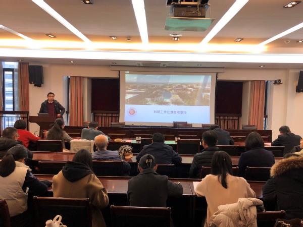副院长杨兴武介绍学院近年科研经费情况,详细解读科研行为负面清单,同时结合具体案例介绍高校科研工作违法违规行为。他指出,科研工作是学院发展的重要支撑,全体教职工必须严格遵守学术规范,杜绝学术不端行为,严格遵守科研管理规定,杜绝各类违规违纪行为。用严的规定,铁的纪律,营造风清气正的科研和学术氛围。