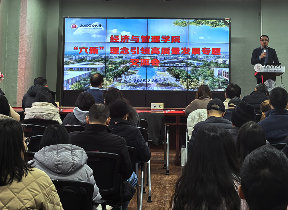 张艺首先对学院全体教职工的努力和付出表示感谢。他带领全体教职工共同学习了习近平总书记在全国教育大会上的重要讲话精神,以及上海市教育大会精神;立足学校党委“六新”发展理念,向全体教职工介绍了学院发展的“六新”主要途径和举措。他强调,国家“双碳”目标下,随着新型电力系统和新型能源体系建设快速发展,以及电力市场改革的推进,经济与管理学院面临着前所未有的发展机遇,要牢牢把握机会,紧紧围绕学校第五次党代会提出的目标要求,凝聚共识、形成合力,进一步提高经管学院学科建设水平和人才培养质量,服务能源电力行业,推动学院高质量发展。