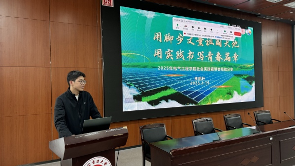 为深化实践育人成效,助力学生社会实践能力提升,3月19日,电气工程学院“知行合一·电亮未来”暑期社会实践专题宣讲会在临港校区学术楼103报告厅举行。学院团委挂职副书记张文文、往期社会实践队长李明轩、队员谢天翊以及学院百余名学生通过线上线下相结合的方式参加宣讲会。会议由学院社会实践部负责人张天姿主持。