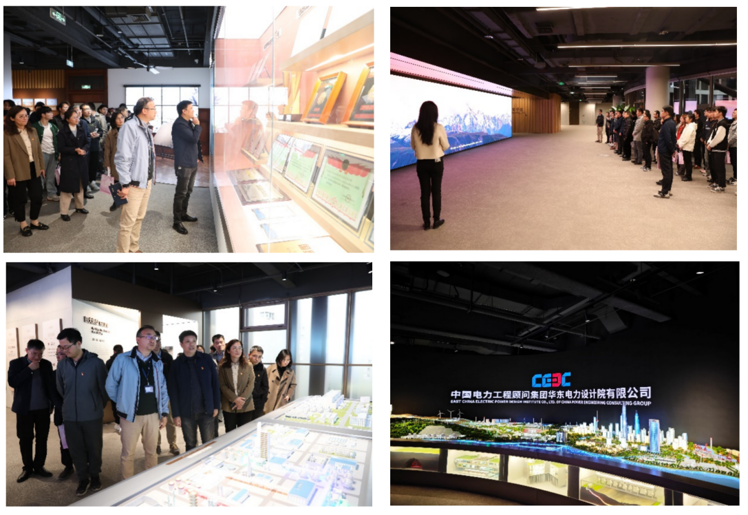 会后,学院一行参观华东院品牌体验馆。通过沉浸式沙盘演示、三维数字化模型交互等展示形式,沉浸式了解华东院在特高压输电、海上风电等领域的标志性工程成果。